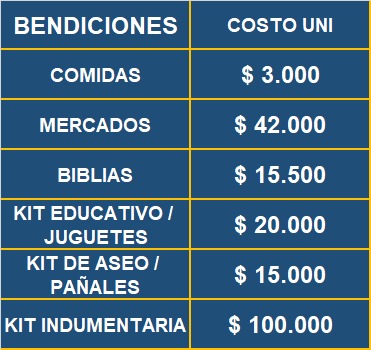 - Su ayuda con insumos , alimentos no perecederos , nos permite bendecir a los mas necesitados